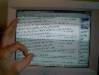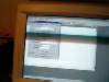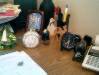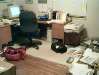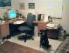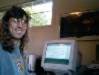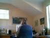 Rob is finished. It's my turn. I'm so busy answering questions I don't have time to take pictures! I ask the guys to take one for me. This is their perspective of me at my desk. | |||